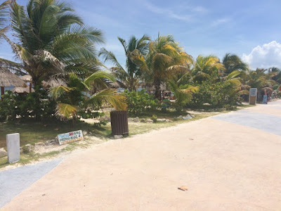 We went in September, so things were pretty sleepy…no cruise ships and very few tourists. Most of the shops, and many of the restaurants were closed. We walked the entire length of the Malecon several times…from the lighthouse to the beginning of the local residential area. As with much of the Caribbean, sargassum has been a problem in Mahahual. To be honest, in a few places along the Malecon the stench from the sargassum was almost unbearable; we basically had to hold our breath and walk fast to get to an area with less seaweed and nauseating odor. We did find a nice restaurant toward the north end of the Malecon with no seaweed smell and a very nice beach. The Blue Kay has covered seating in the restaurant and also seating under mini palapas right on the beach. We had lunch there and hung out for several hours until it was time to head back to our ADO bus.